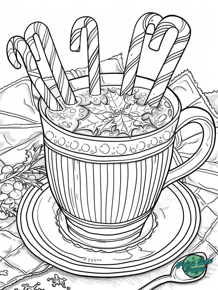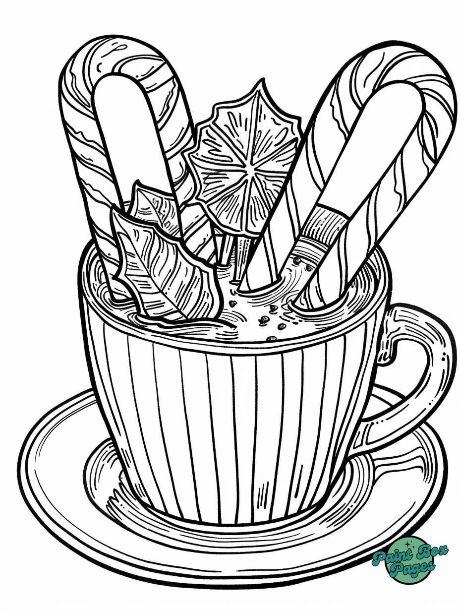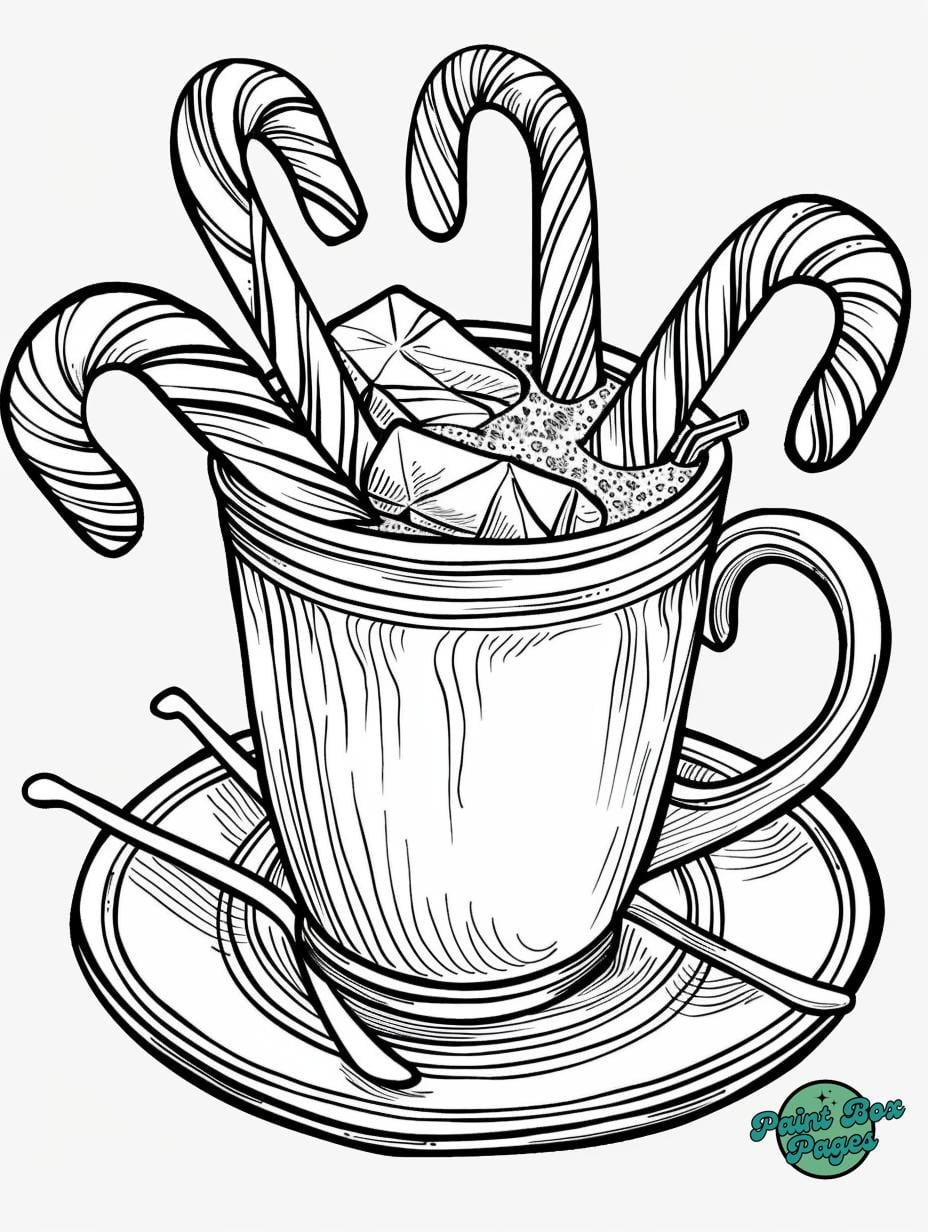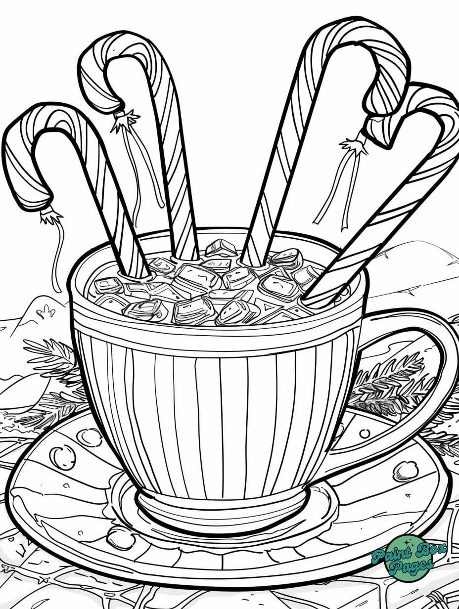 12 Candy Cane Hot Chocolate Free Coloring Pages