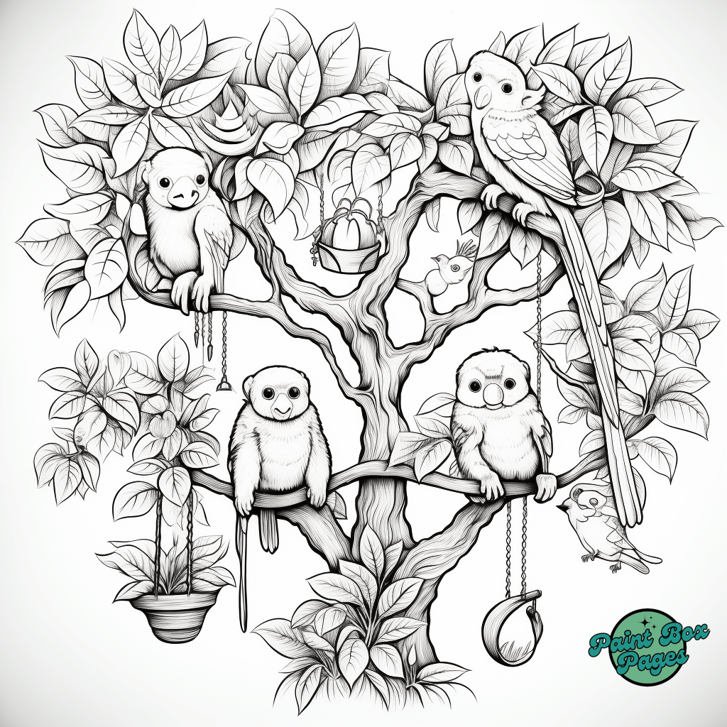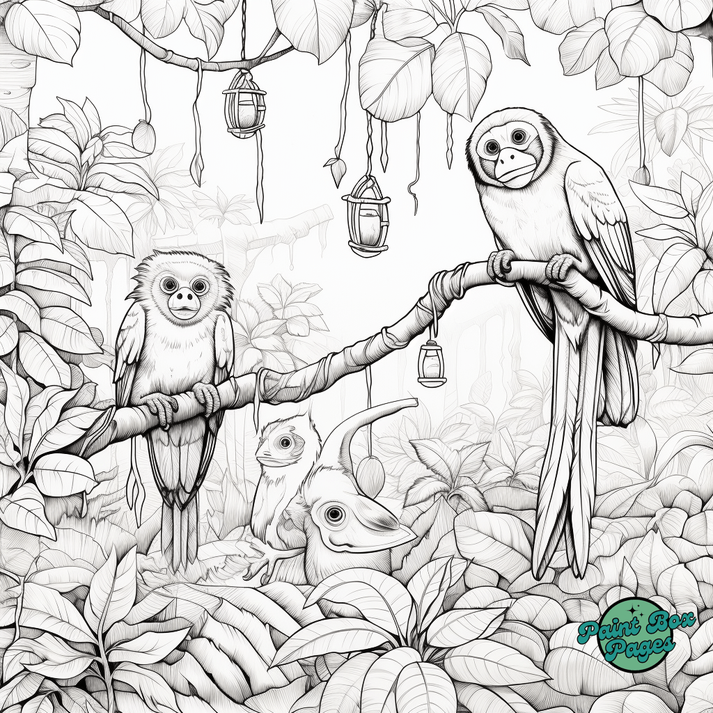 Rainforest Coloring Pages for Adults! These pages feature intricate illustrations inspired by the lush and diverse rainforest environment, designed to captivate and inspire coloring enthusiasts of all ages.