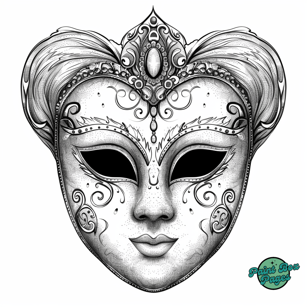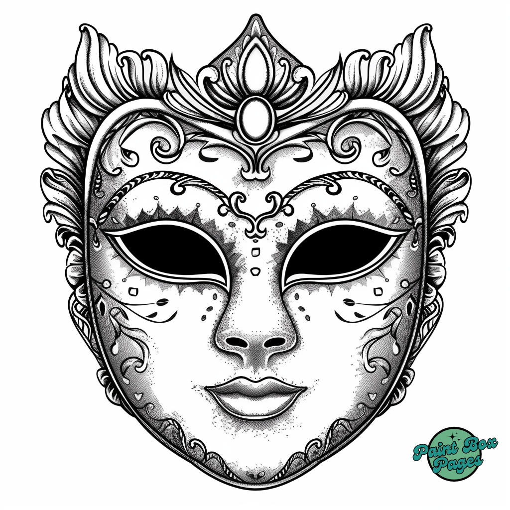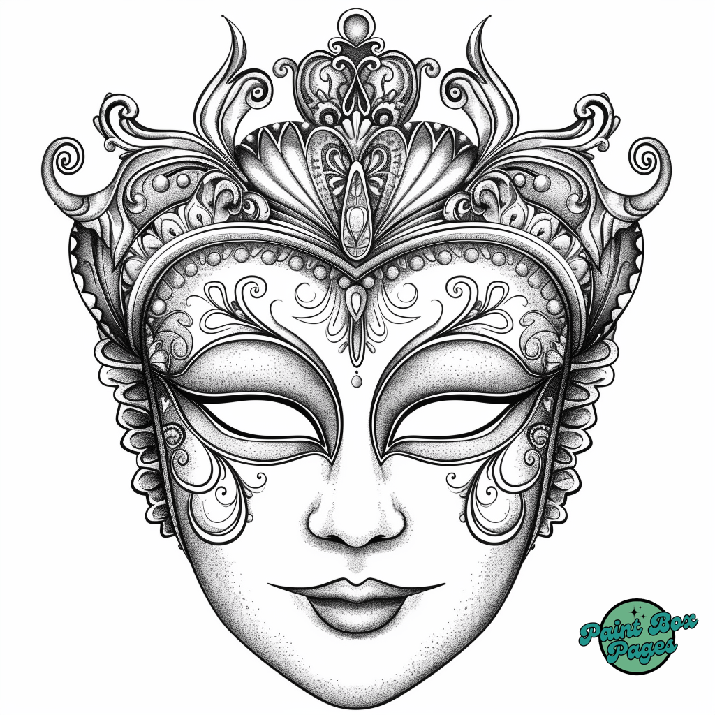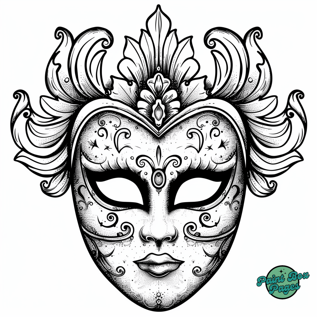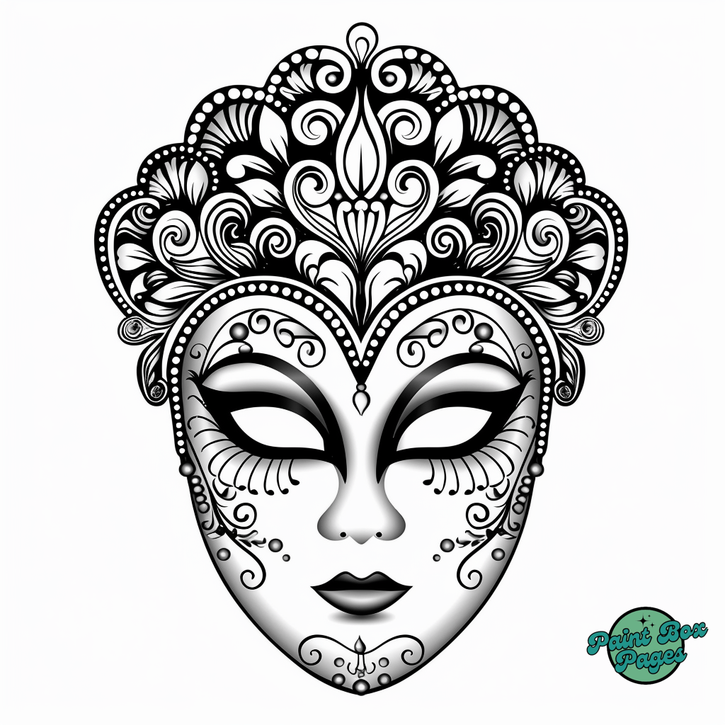 29 Venetian Masks with our Coloring Printables for Adults! These pages feature elaborate designs of traditional Venetian masks, perfect for adults seeking a sophisticated and relaxing coloring experience.