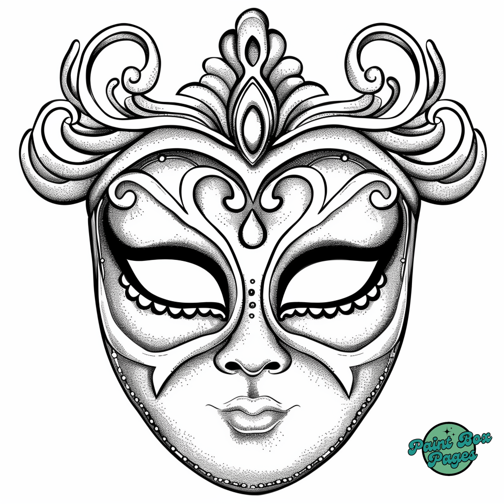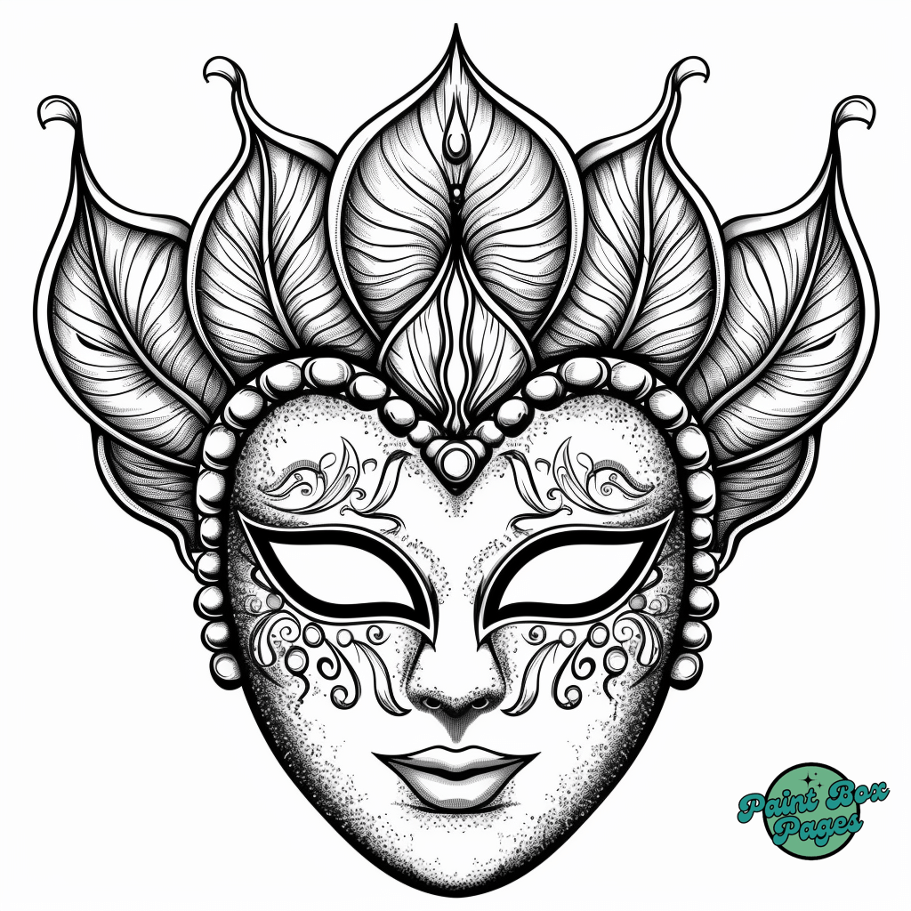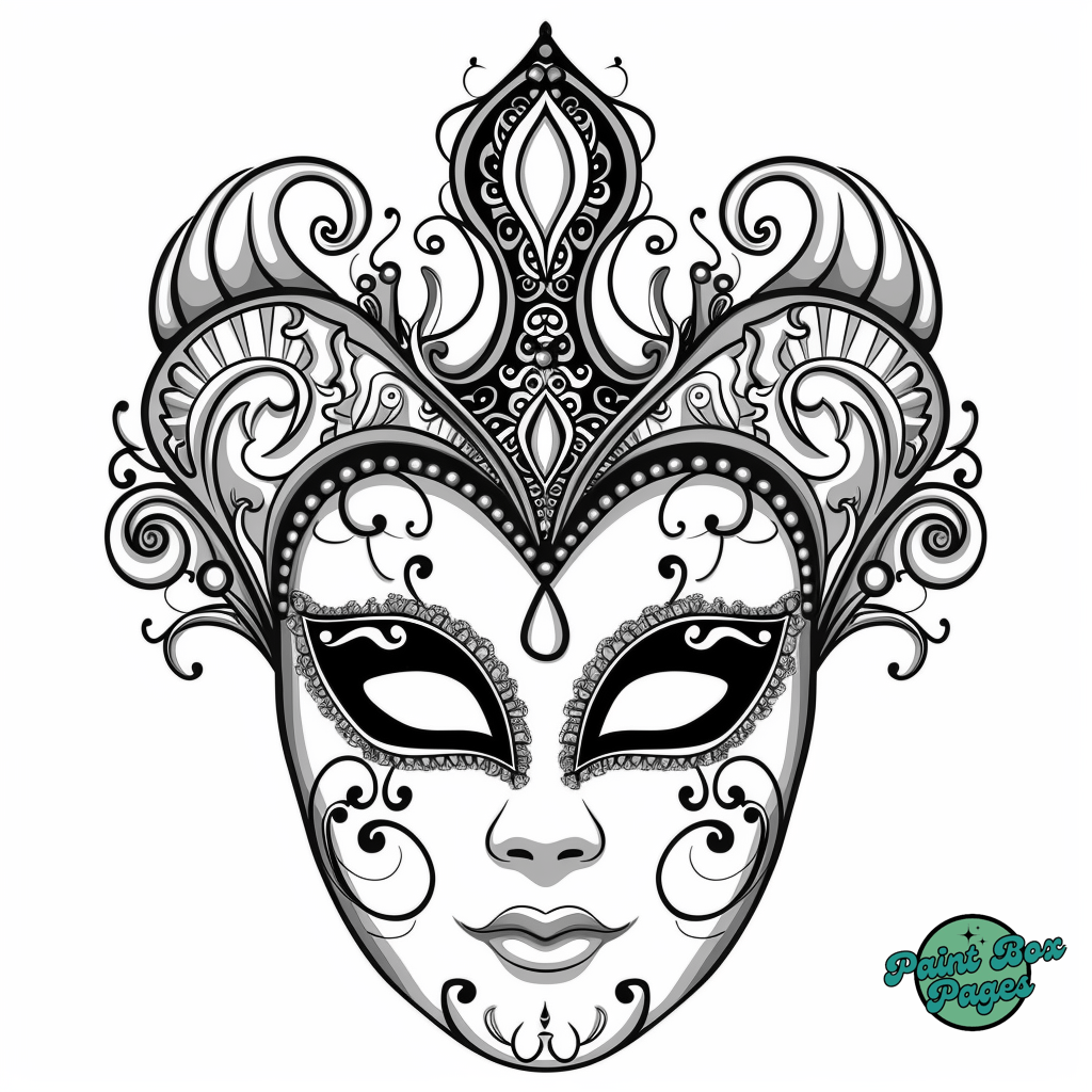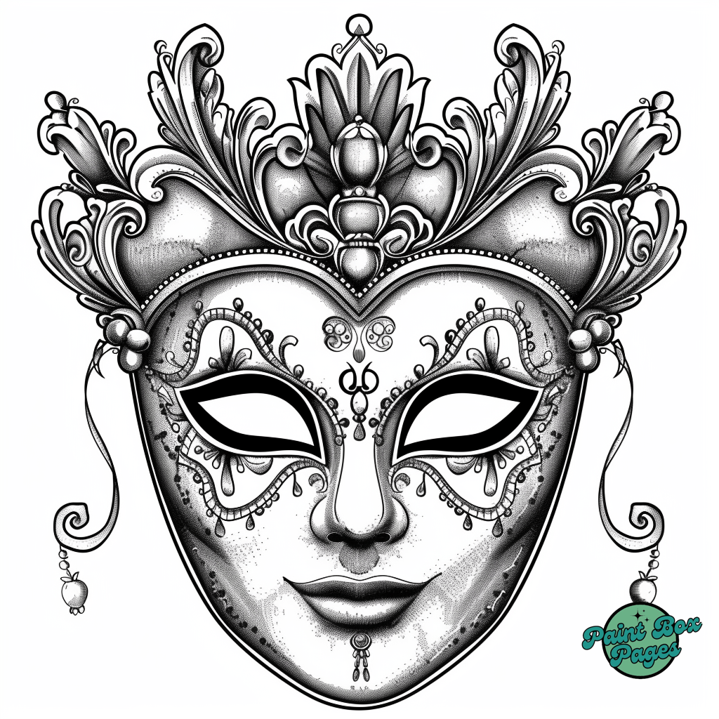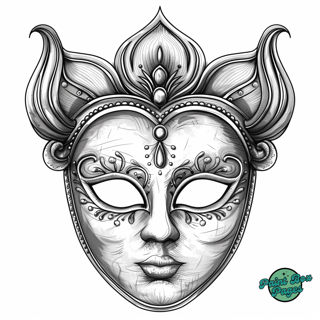 29 Venetian Masks with our Coloring Printables for Adults! These pages feature elaborate designs of traditional Venetian masks, perfect for adults seeking a sophisticated and relaxing coloring experience.