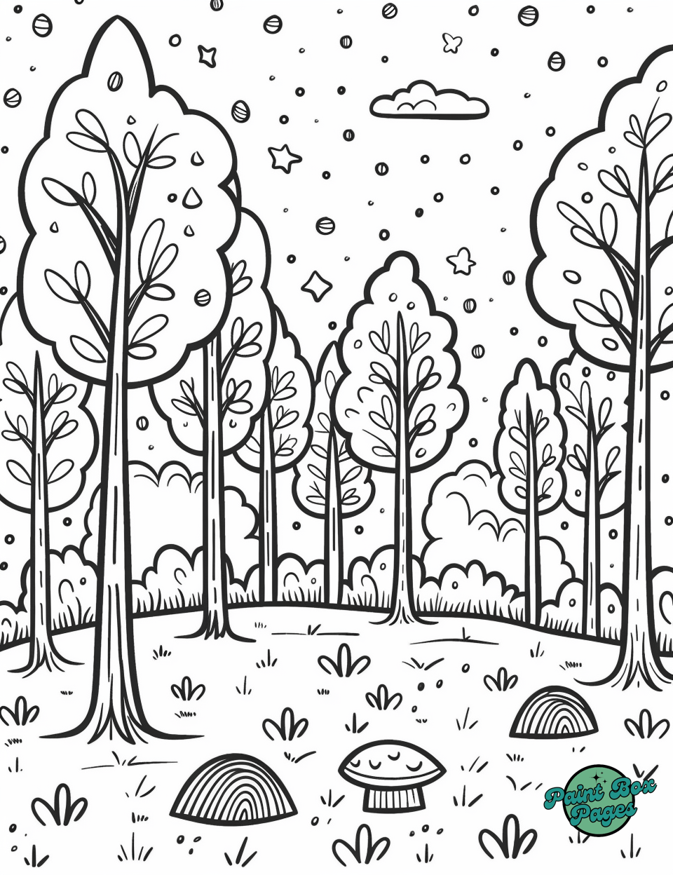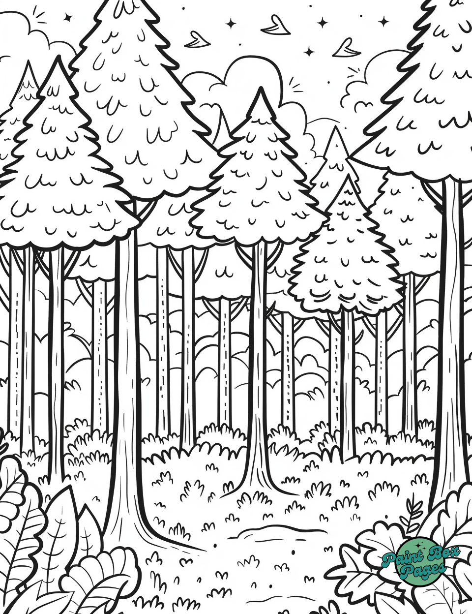 39 Cartoon Forest Coloring Pages for Adults for Free! These pages feature playful and imaginative illustrations of forest scenes, designed to spark creativity and relaxation in adult coloring enthusiasts.