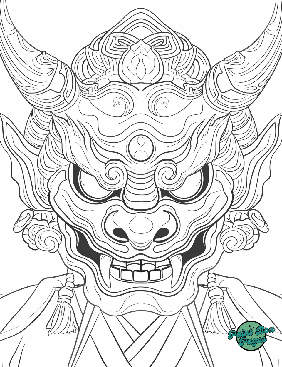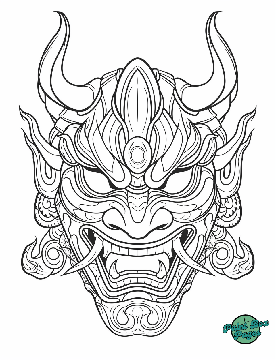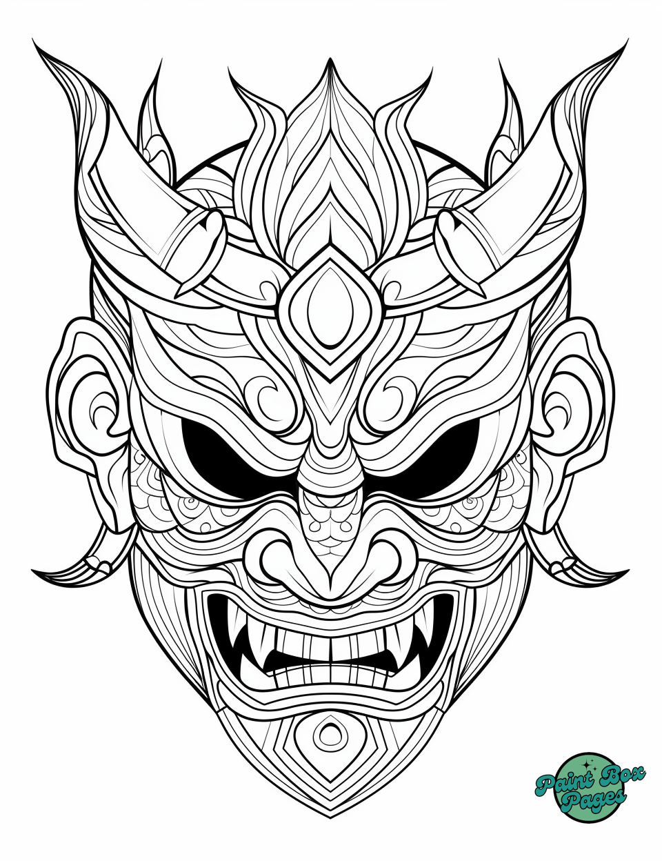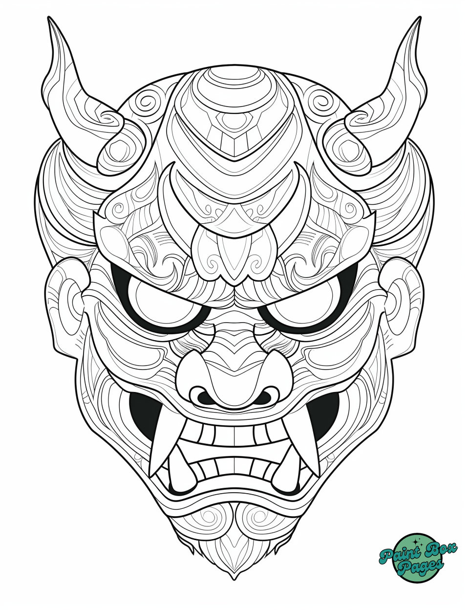 Grab your coloring tools and dive into the dramatic and fascinating world of Oni masks. Bring these mythical designs to life with your creative touch!