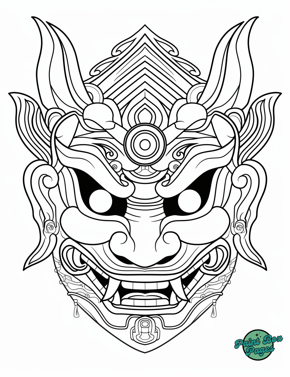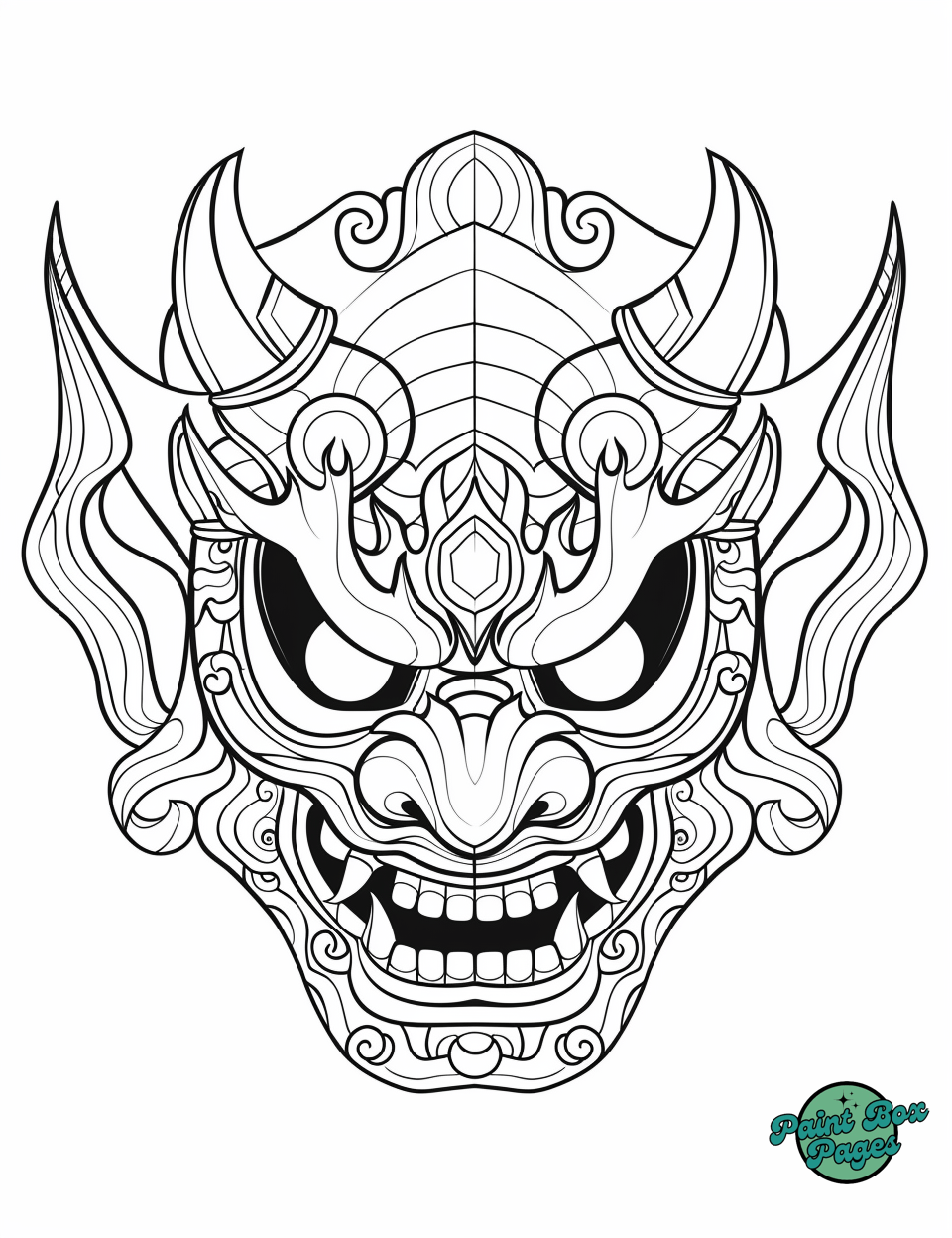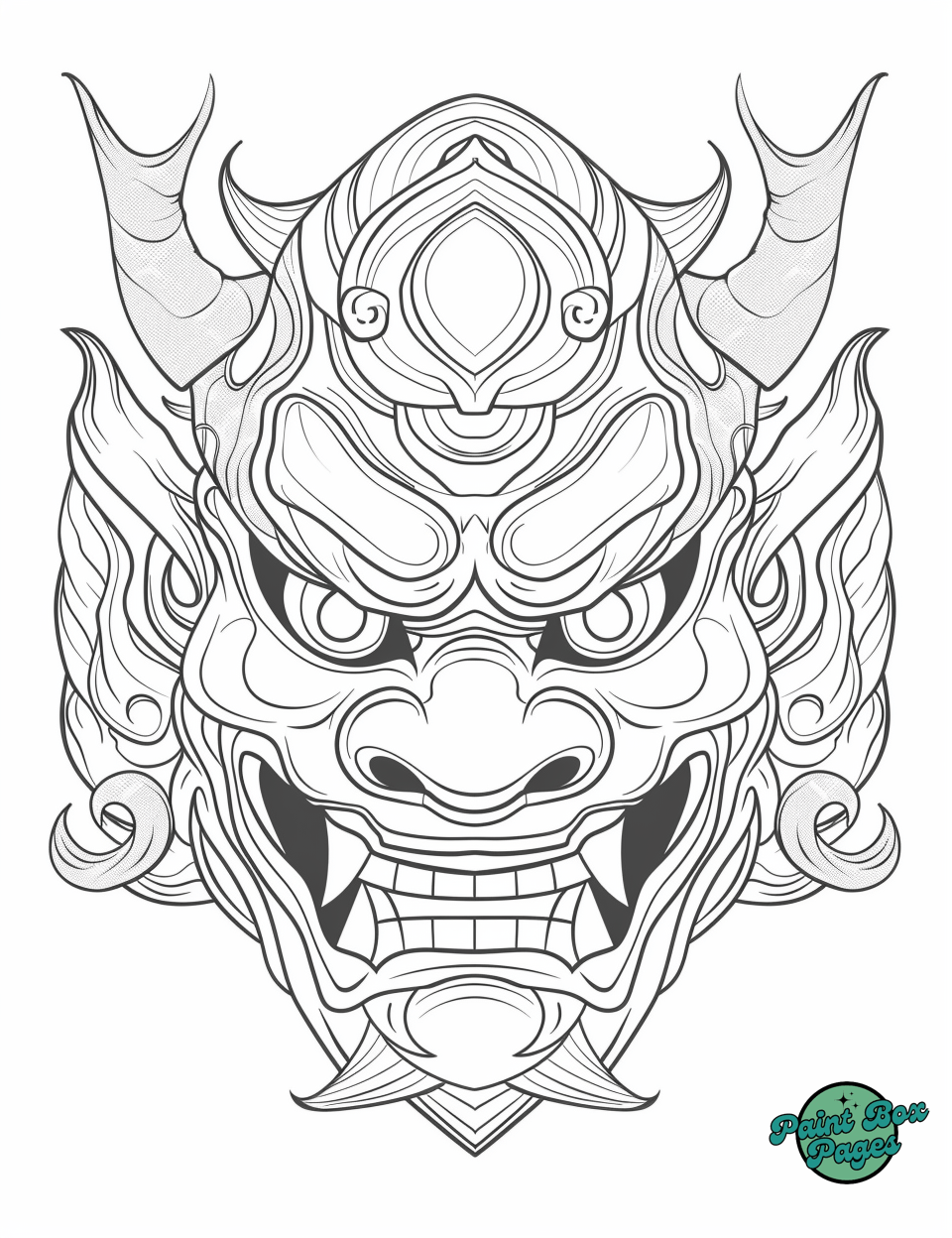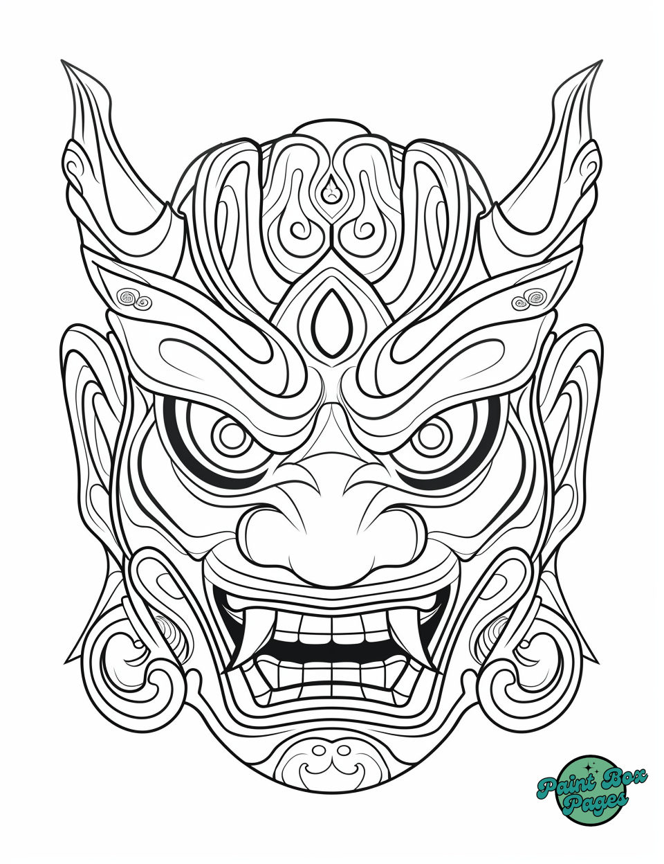 Grab your coloring tools and dive into the dramatic and fascinating world of Oni masks. Bring these mythical designs to life with your creative touch!