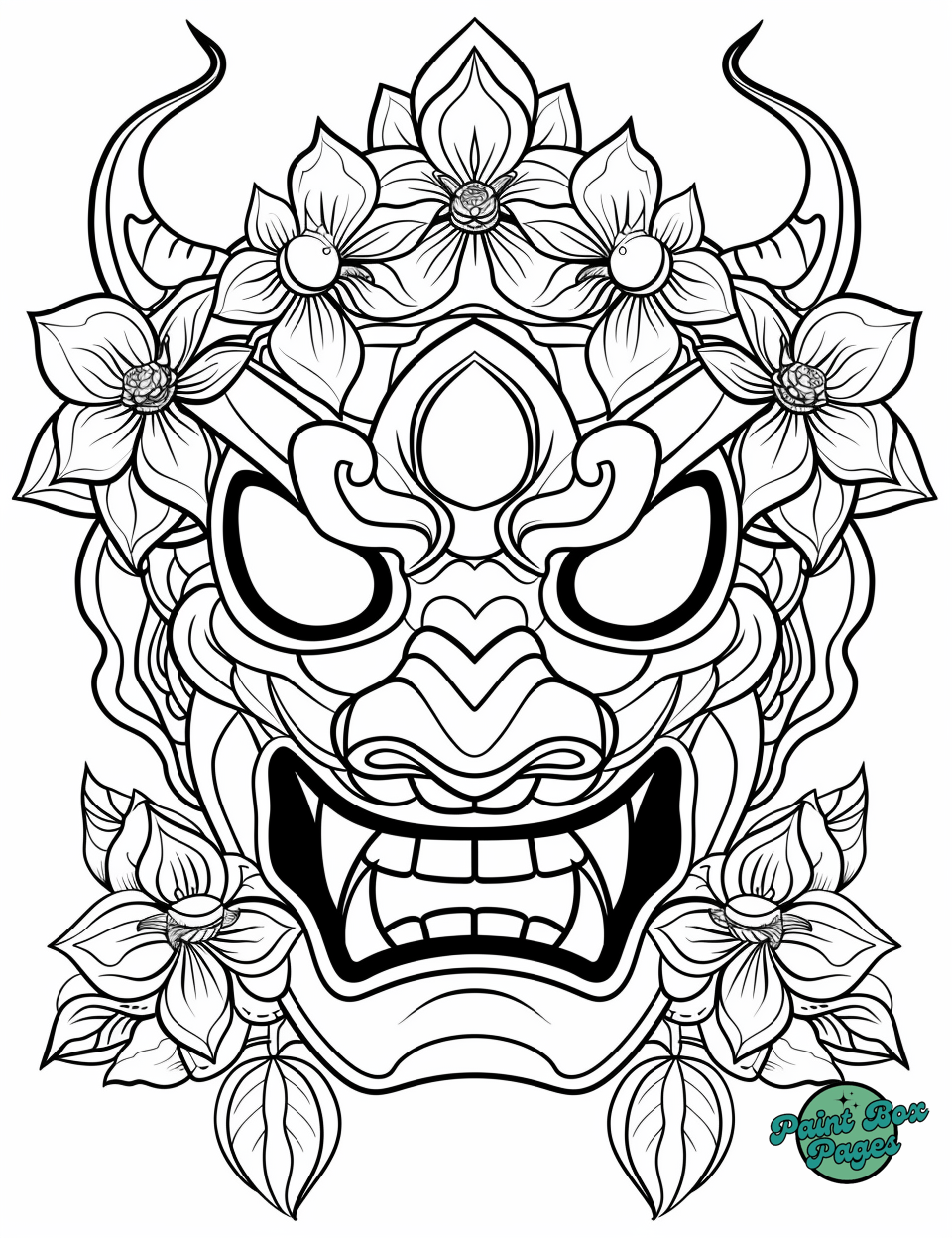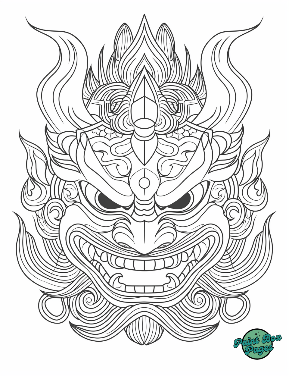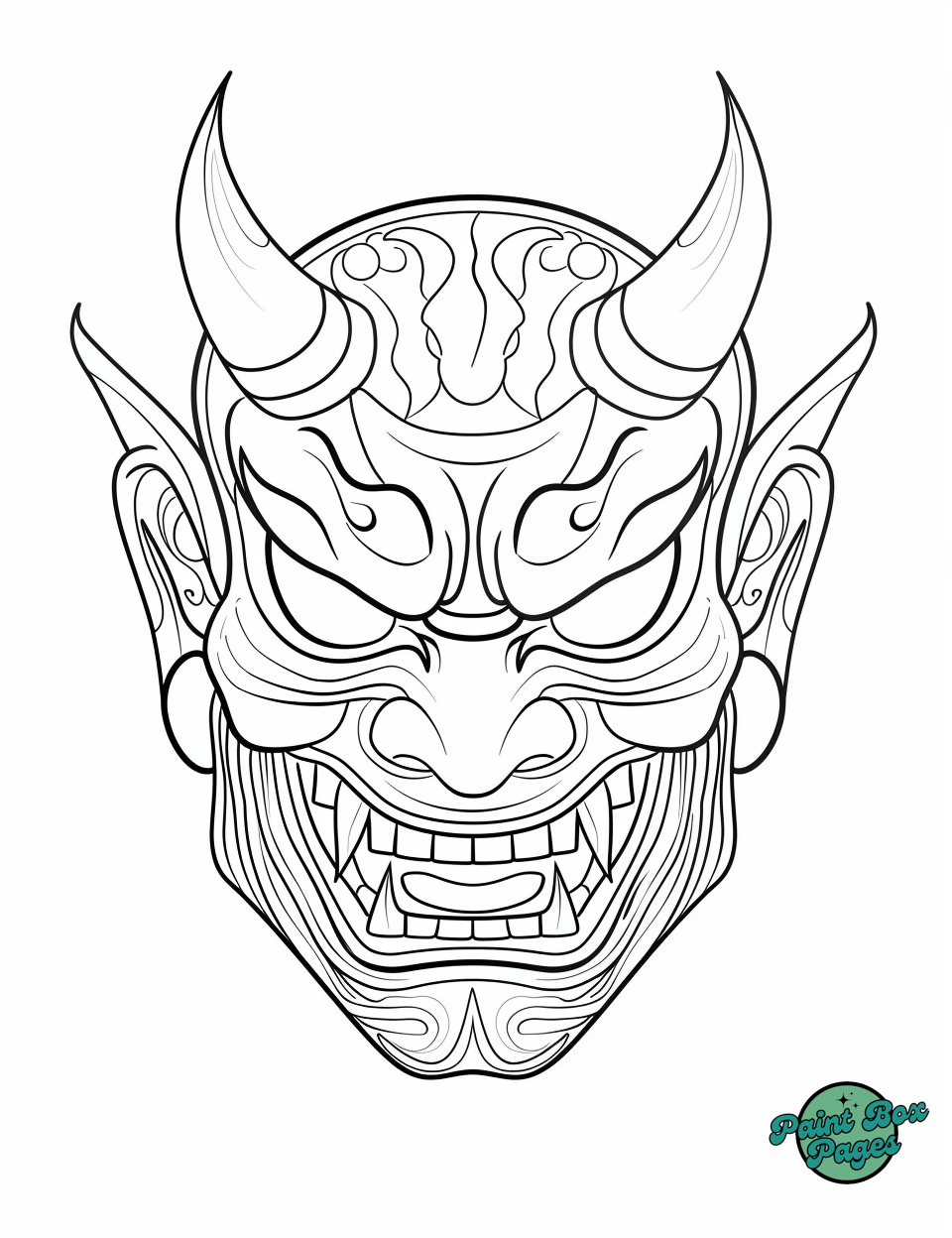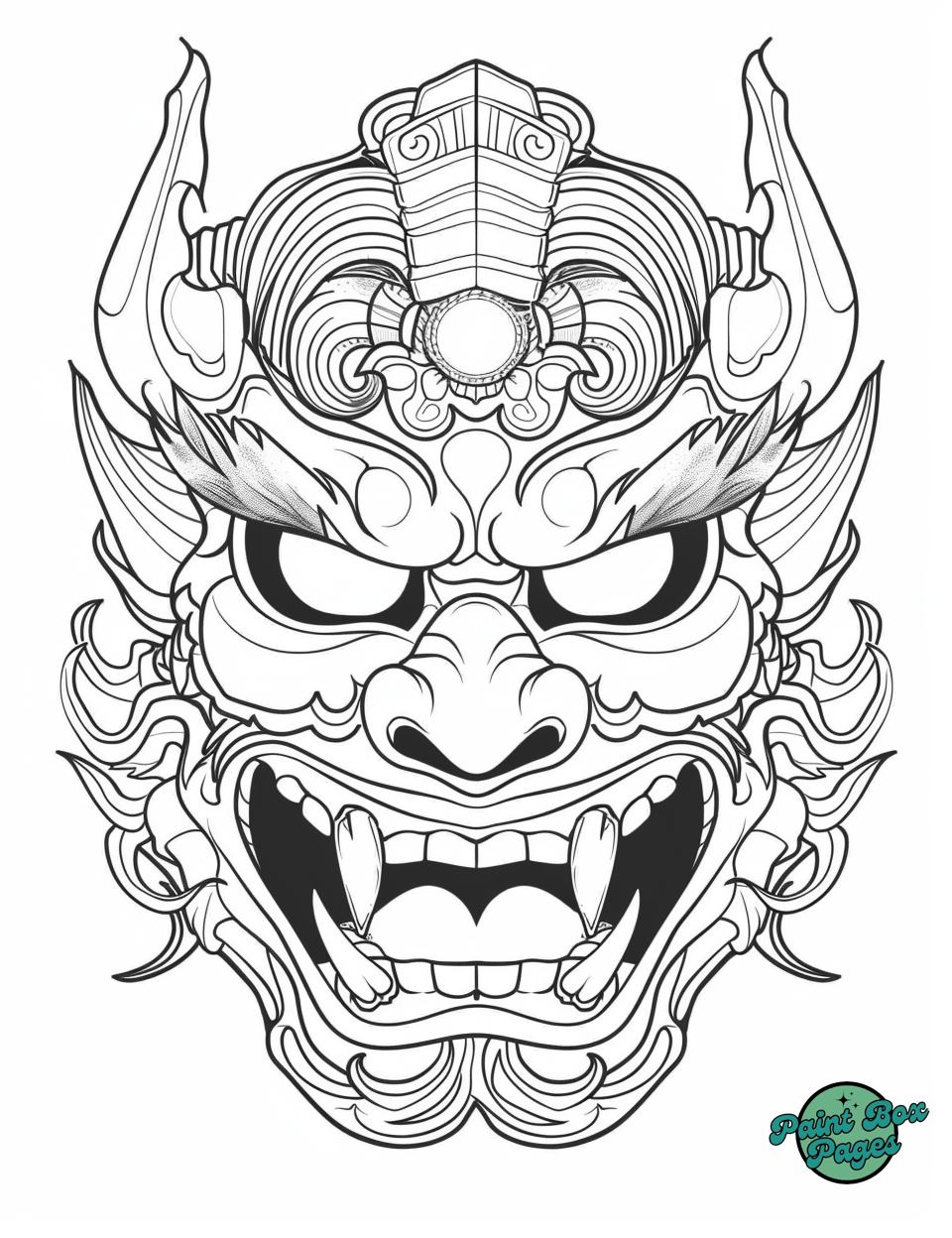 Grab your coloring tools and dive into the dramatic and fascinating world of Oni masks. Bring these mythical designs to life with your creative touch!