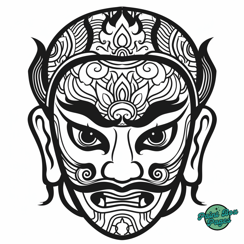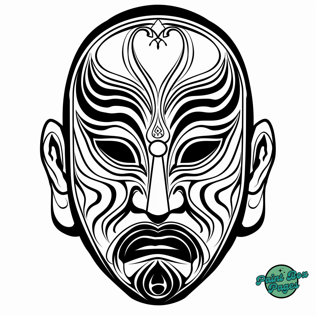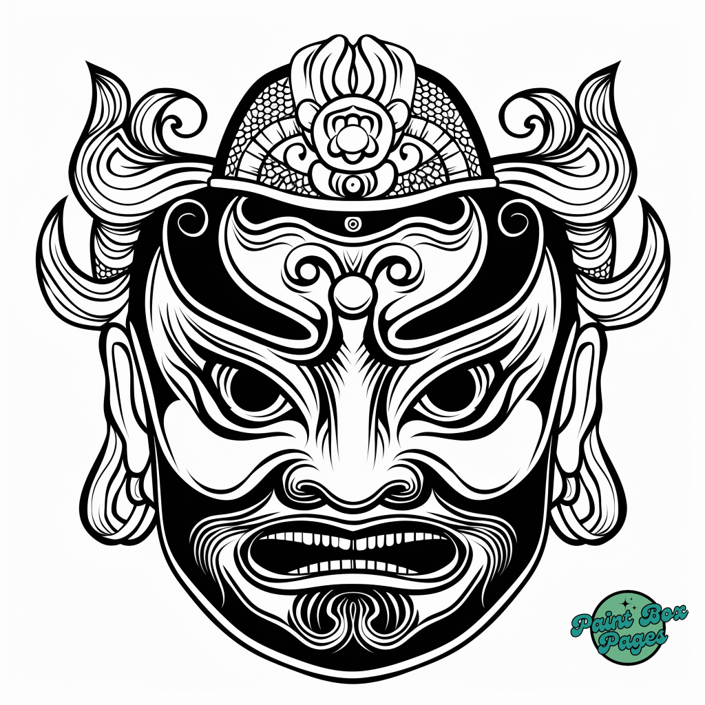 60 Asian Chinese Opera Mask Coloring Pages