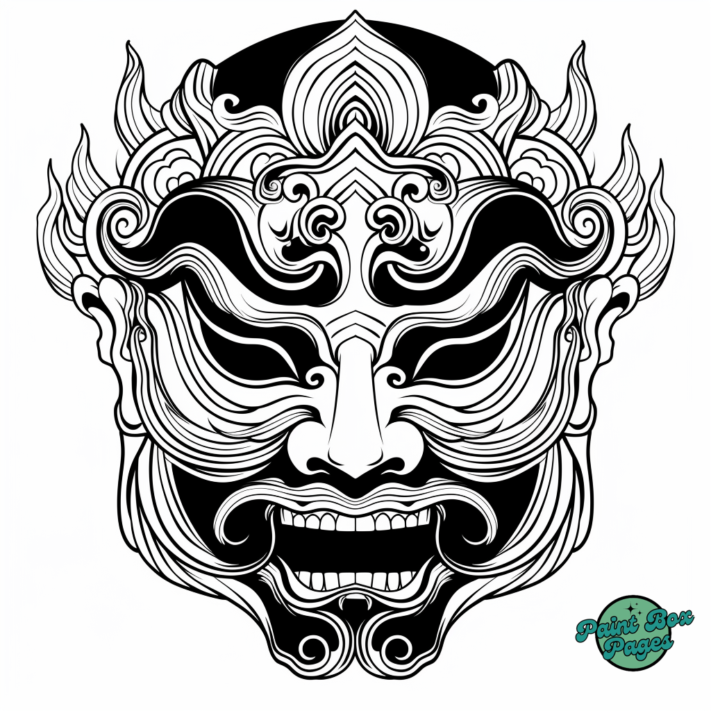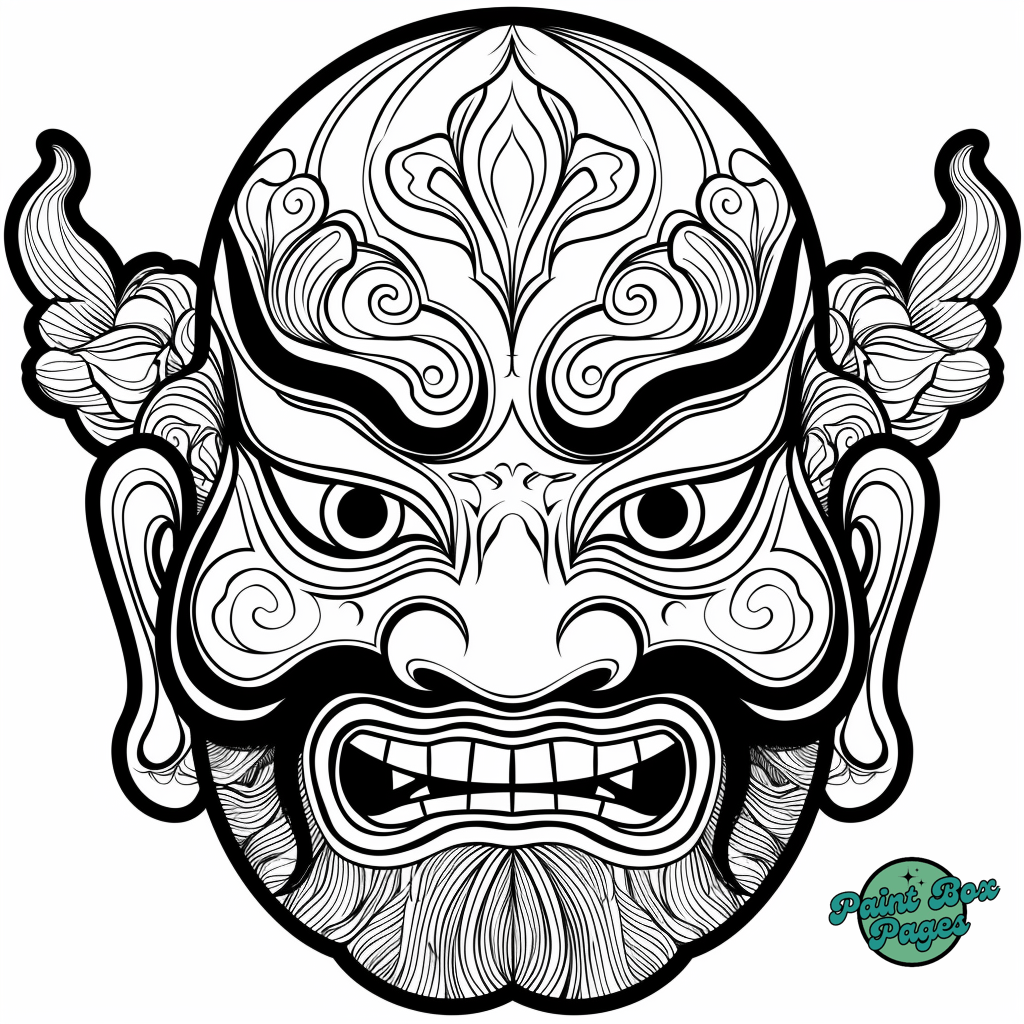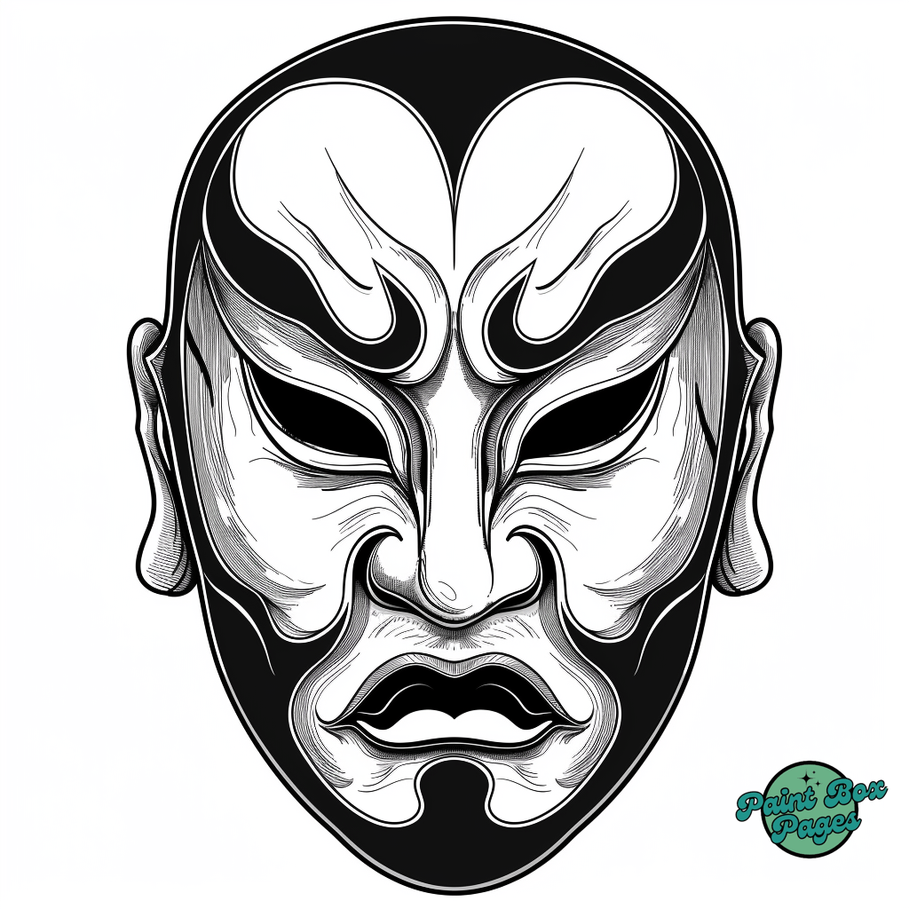60 Asian Chinese Opera Mask Coloring Pages