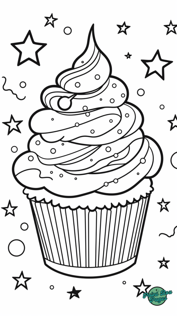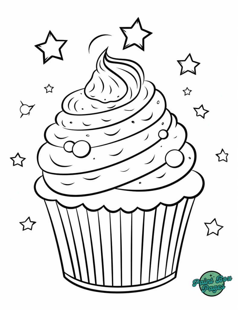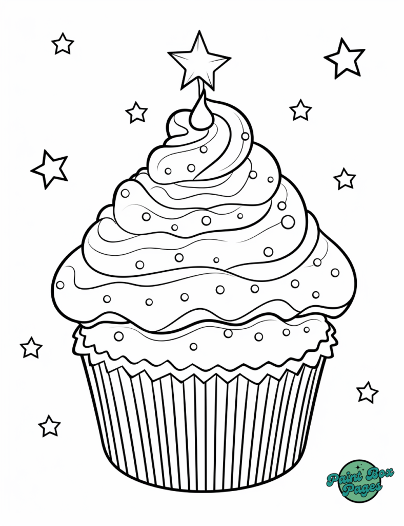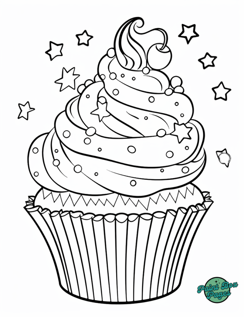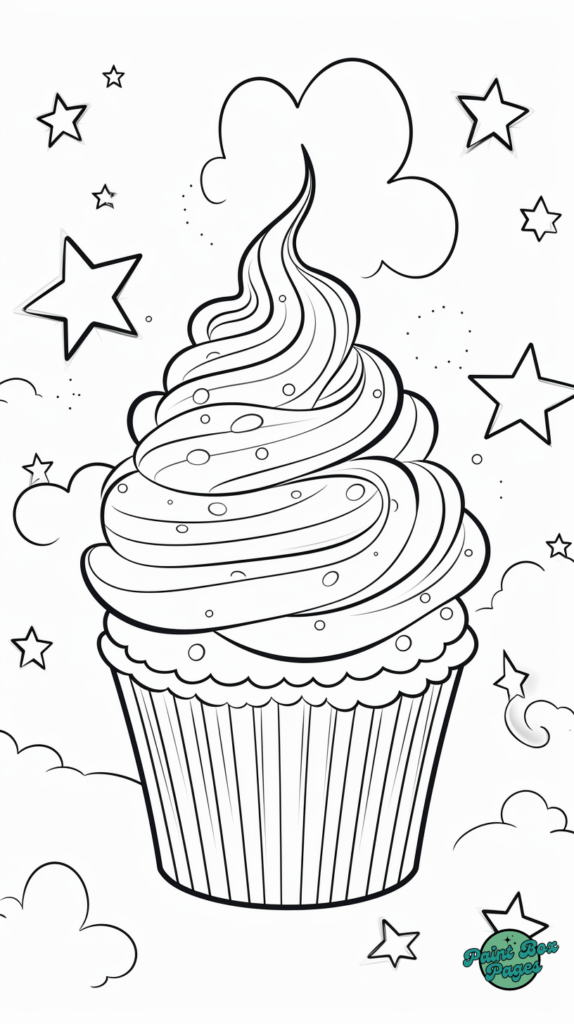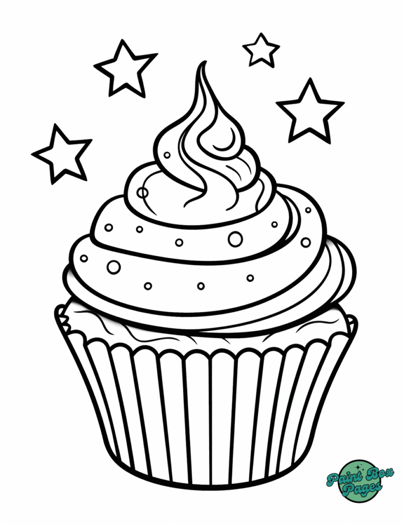 Grab your favorite colors and dive into decorating these sparkling cupcake designs. Let the coloring fun begin!
