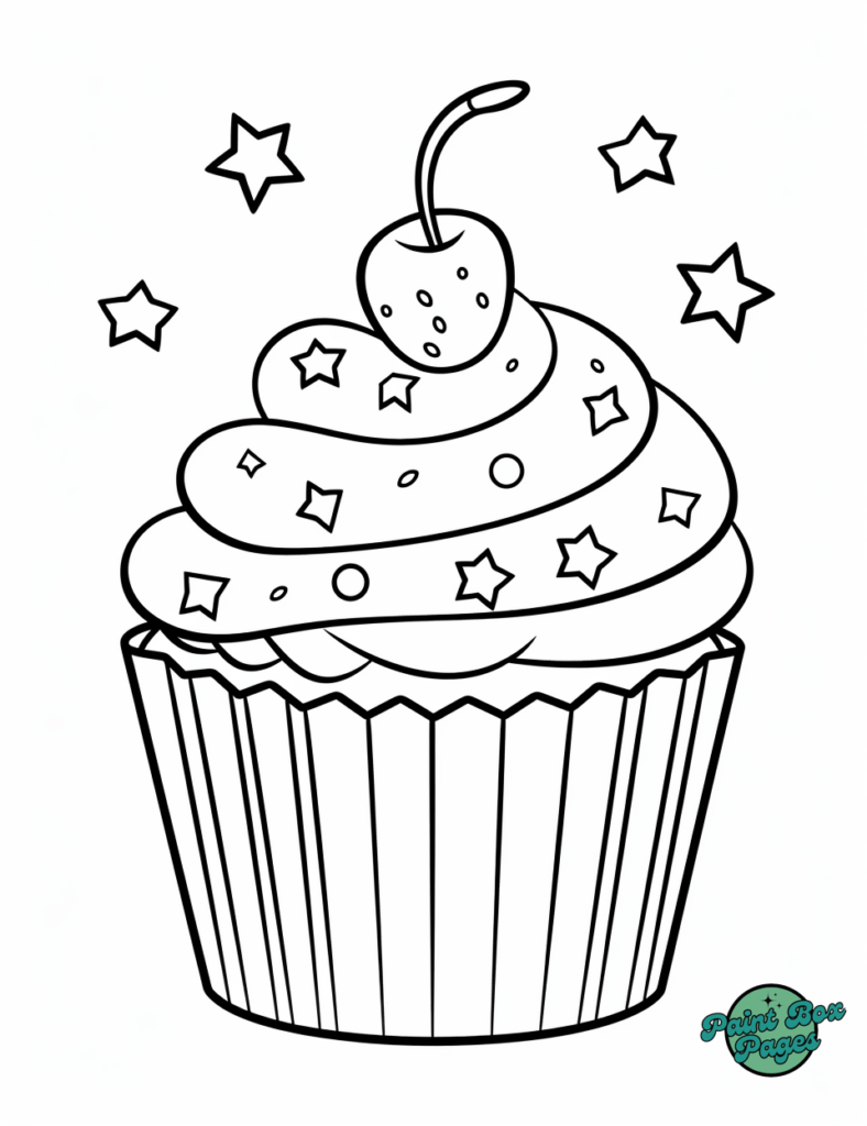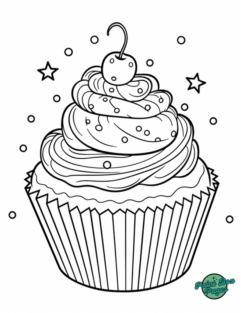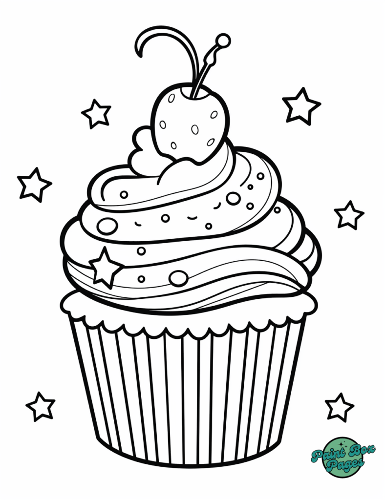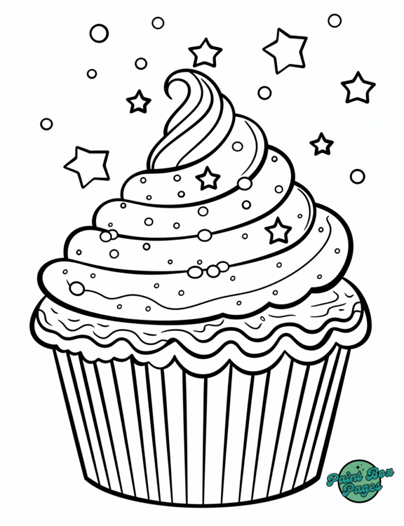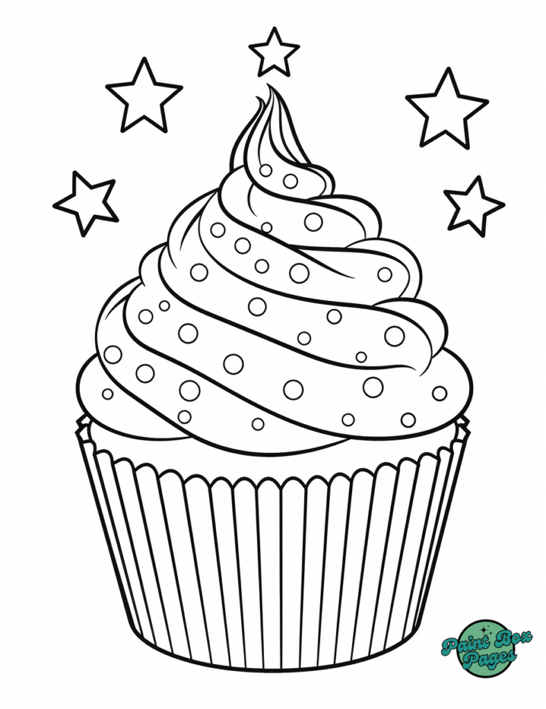 Grab your favorite colors and dive into decorating these sparkling cupcake designs. Let the coloring fun begin!