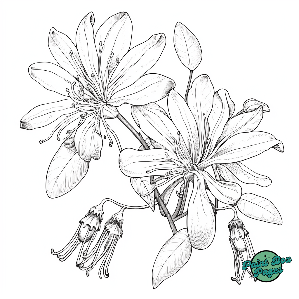 Grab your favorite coloring tools and immerse yourself in the enchanting world of honeysuckles, hibiscus, and gerbera daisies. Let the coloring journey begin!