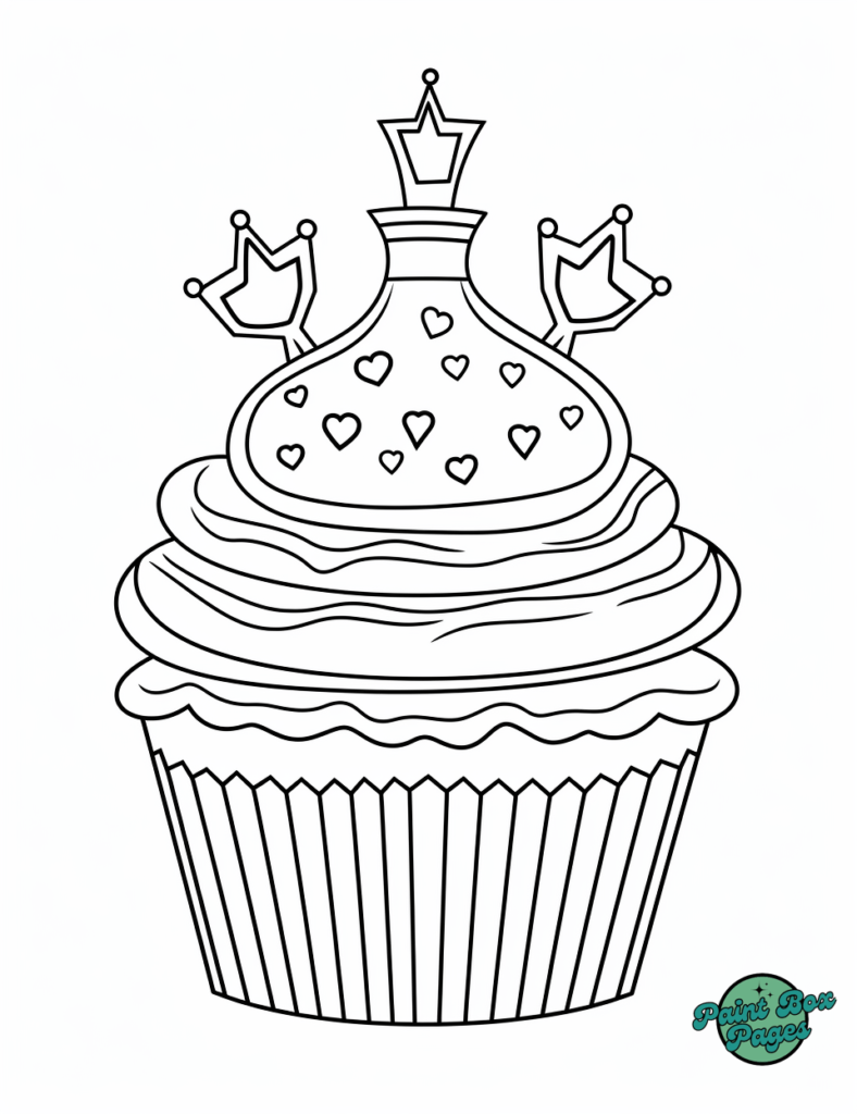 Step into a world of elegance with our Royal Cupcake Coloring Pages! These pages feature regal cupcake designs fit for royalty, perfect for young artists and those who love a touch of class.